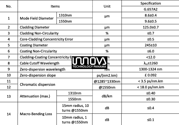 - Fibra de Alta Calidad: Utiliza 2 núcleos de fibra monomodo G.657A2, conocida como fibra de baja sensibilidad a la flexión, que ofrece un alto ancho de banda y una excelente propiedad de transmisión.